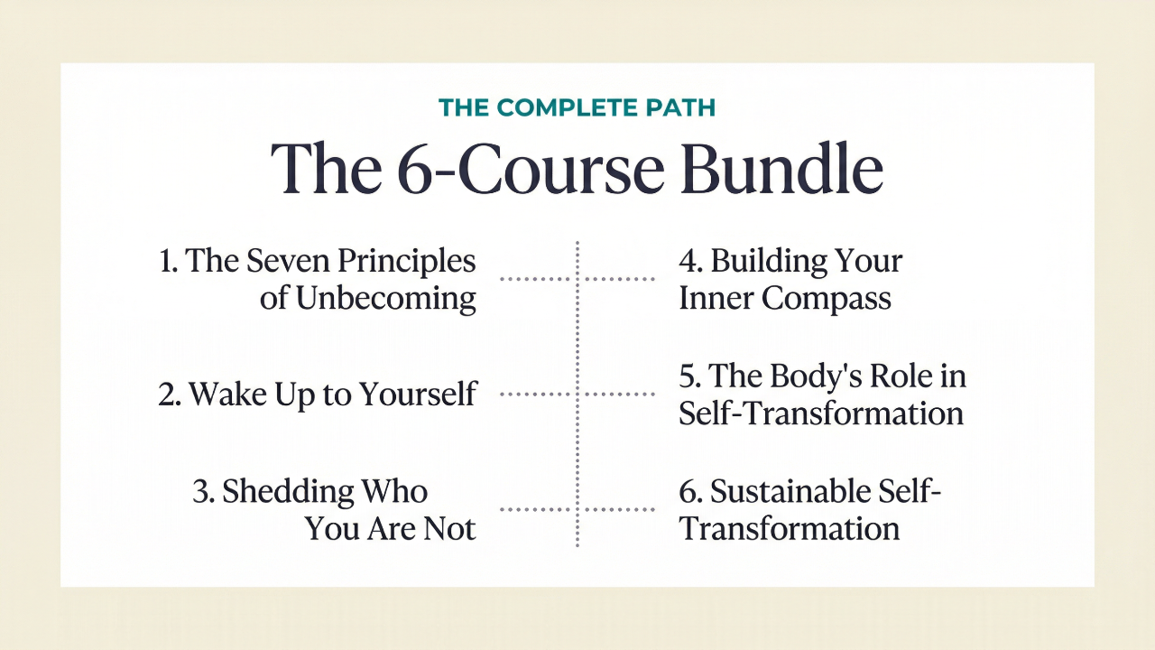 For those who are ready to go all-in on this journey, the complete six-course bundle is the most immersive, integrated, and cost-effective path to coming home to yourself. This isn’t just a collection of courses; it is a complete, structured, and deeply supportive curriculum designed to guide you through every stage of transformation. It is the entire roadmap, laid out for you.